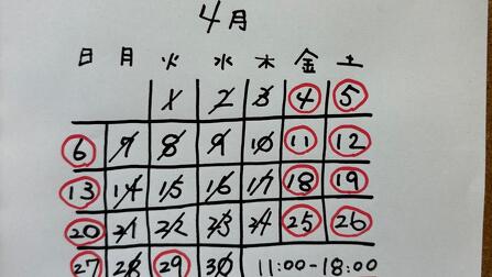 お休みがちょっとだけ多くなりますので、ご注意くださいね。