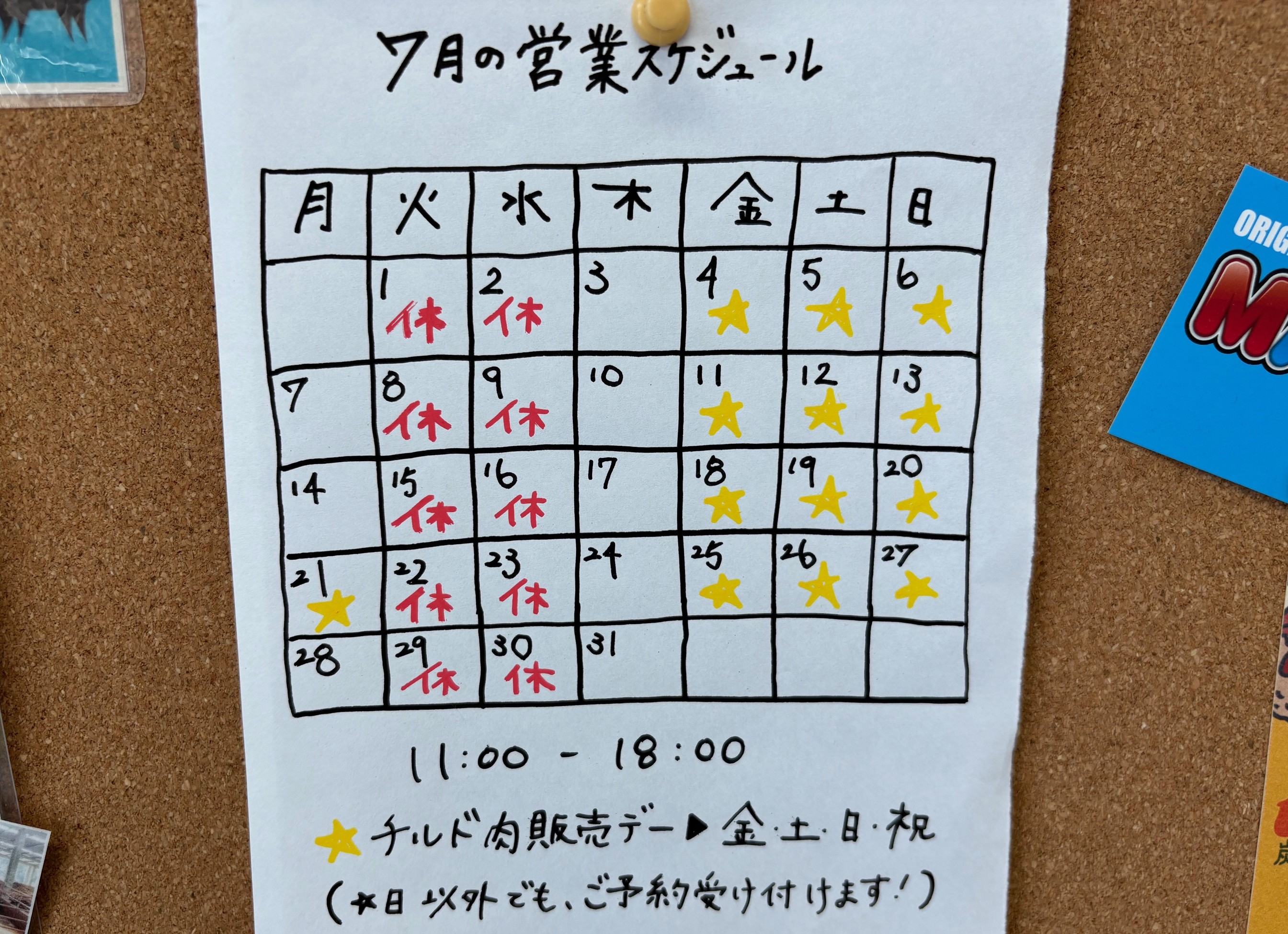 7月の営業日をアップするのをすっかり忘れていました。