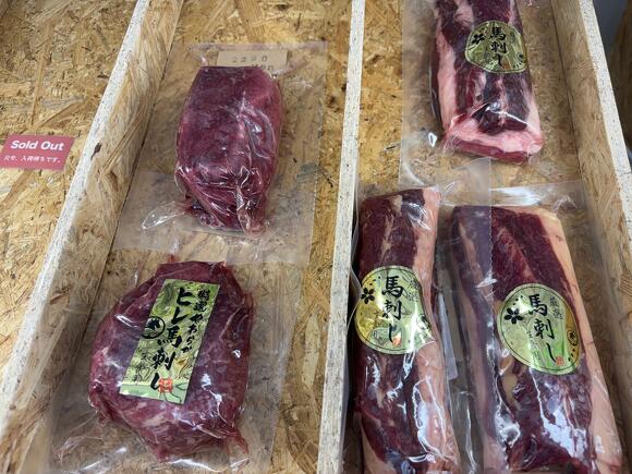 タレ漬けの新商品が出てたけど、それより金ぴかシールで味も品質もアップしたように見える馬刺しの写真を載せておきます。