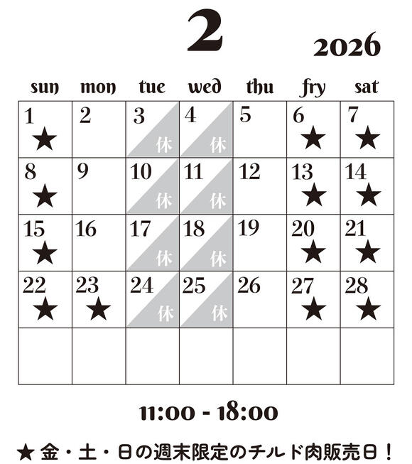 2月も、頑張って営業しますよー。目玉新商品としてブランド牛ができましたし。