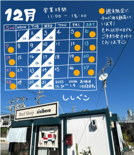 12月は29日(月)まで営業します!(11時~18時営業)