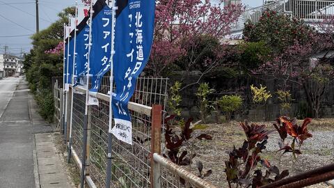 2月になり、桜がきれいな時期になりました。 ・・・と、もう終わりでしたね。 2月のキャンプ応援のために、日本ハムファイターズさんののぼりを 立てましたが、風が強くてクルクルと巻き取られてしまいます。 ...